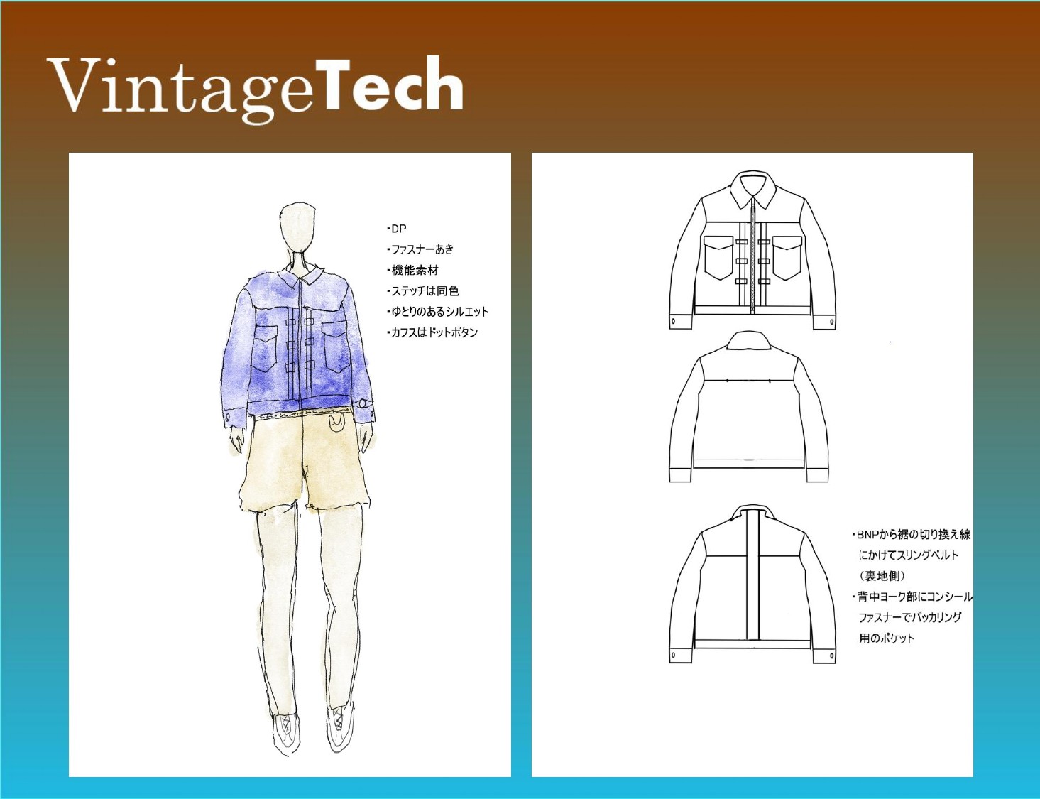 製品コンセプトは「Vintage Tech」です。Gジャンのヴィンテージアイテムをインスピレーションの元とし、テクニカル要素を加えることでランニングウェアとして作り上げています。試作品を実際のトレイルランニングレースでもテストし、例えばランニングザックと干渉しにくい位置にポケットを配置し直すなどの調整を行いました。